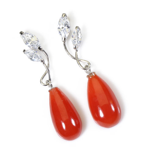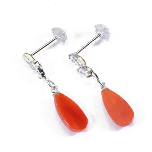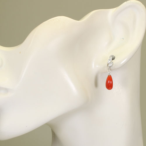 赤珊瑚 ピアス雫 K14WG ホワイトゴールド 無染色 SANSUI レッド レディース 女性 天然珊瑚 sango 本さんご コーラル 宝石 サンゴ 専門店