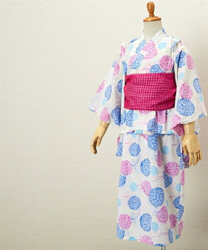 浴衣 ワンピース 上下+帯2本 サンドレスタイプ 女の子 子供服 サックス あじさい /パープル あじさい /パープル 梅柄 身長100/110/120/130cm ニッセン nissen